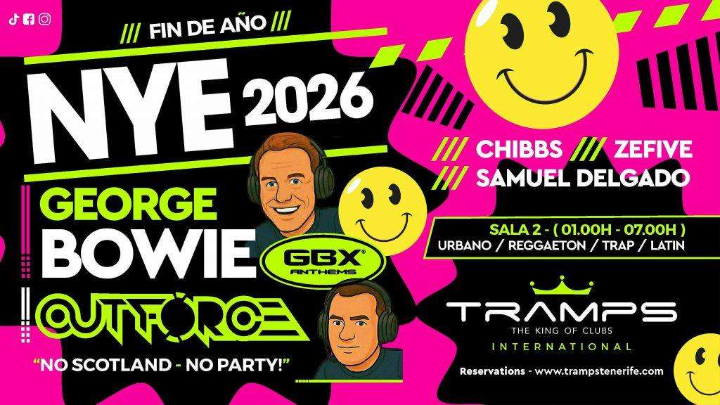 George Bowie (GBX) & Outforce (Scotland) take over the decks with legendary sets. From house to high-energy club anthems, they’ll keep the dancefloor alive as we ring in the bells of 2026. Expect a night of music, lights, and pure clubbing magic that only Tramps can deliver.